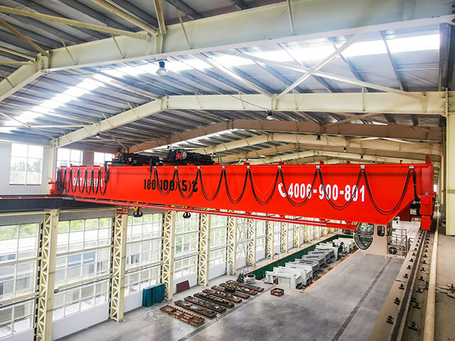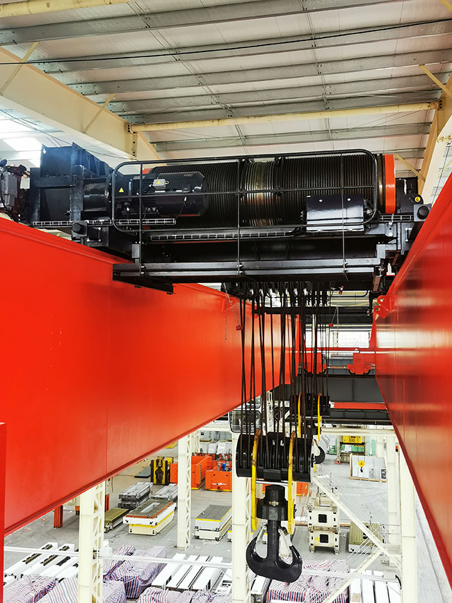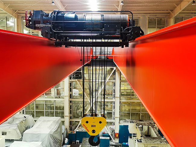 該起重機(jī)起重量達(dá)到180t,多鉤協(xié)同翻轉(zhuǎn)重型機(jī)床床身,全變頻無級調(diào)速、自適應(yīng)大角度斜拉,操作簡單、運行平穩(wěn),徹底改變了大型重機(jī)制造行業(yè)危險度極高的床身翻轉(zhuǎn)工藝,徹底消除了重型機(jī)床床身翻轉(zhuǎn)安全隱患。獲得客戶揚(yáng)力集團(tuán)好評!