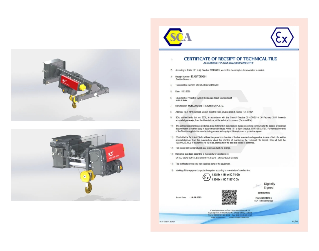 重磅好消息!奧力通起重機(jī)(華德)榮獲ATEX防爆認(rèn)證,開啟歐洲市場新紀(jì)元!